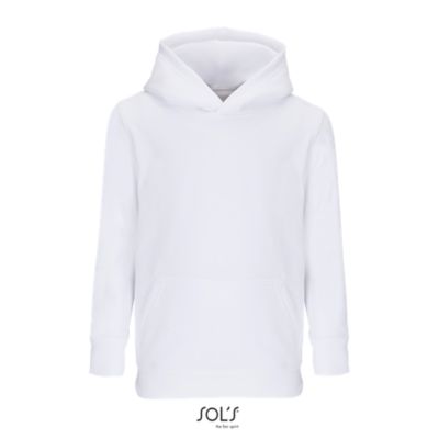 FELPA BAMBINO CON CAPPUCCIO. FELPA GARZATA 280. 80% cotone - 20% poliestere riciclato certificato GRS. . Maniche montate Tagliata e cucita Polsini e fondo del capo a costina 1x1 Tasca a marsupio Cappuccio doppio tessuto Mezzaluna e nastro di rinforzo in jersey sul collo Stile casual.. .