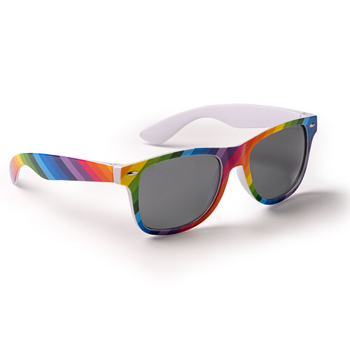 Occhiali da sole con protezione UV400. Montatura in RPET e lenti AC (acetato di cellulosa) in nero, disponibili in un'ampia gamma di colori. Confezionati singolarmente. .