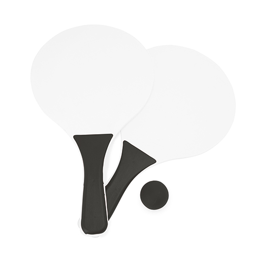 Racchette da spiaggia in legno naturale, con manici rinforzati, disponibile in diversi colori. Fornite in borsa a rete con pallina colorata coordinata.. .